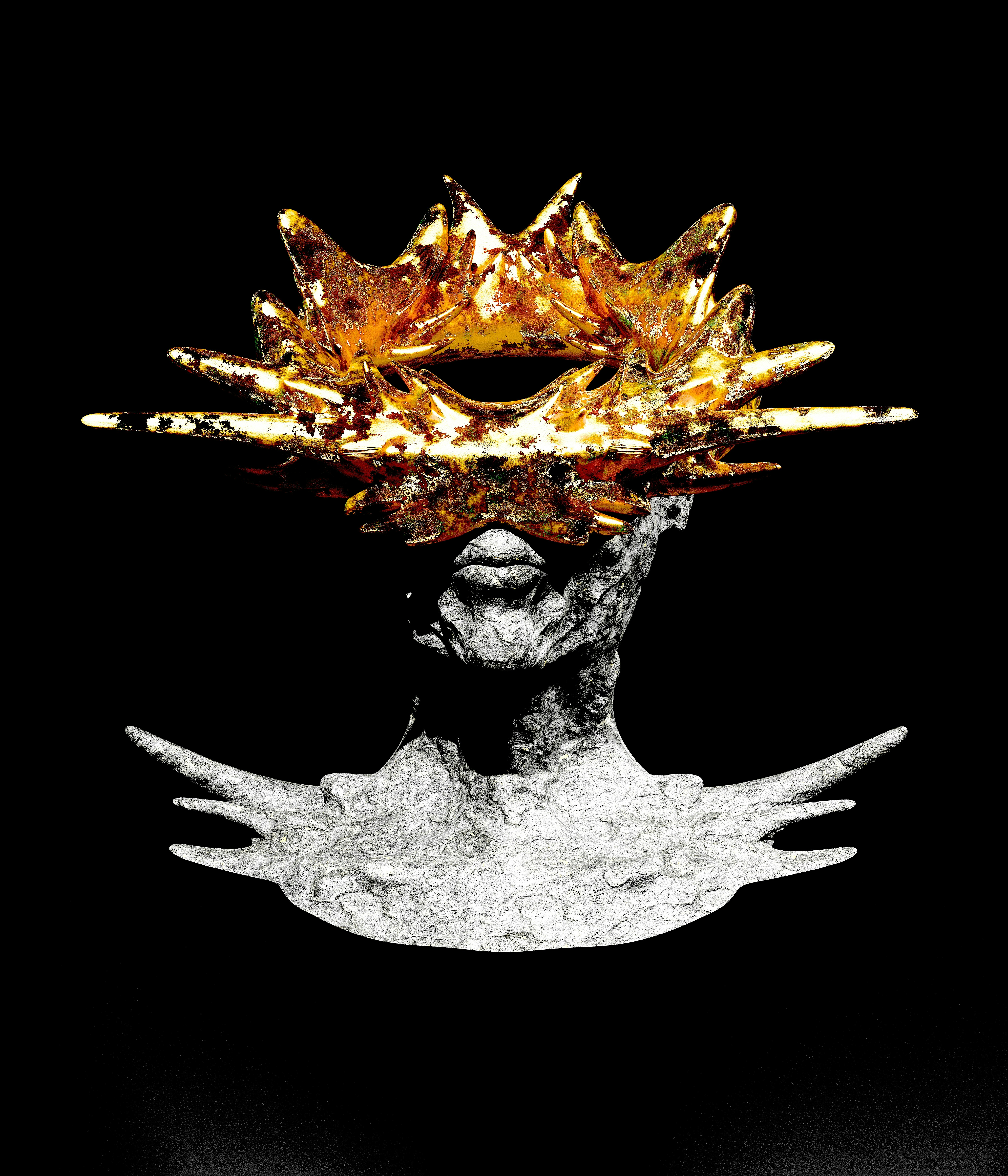 You see an angelic figure on a white scorched throne wielding a black scorched crown